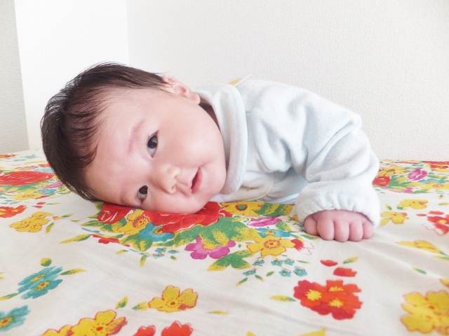 うつぶせの姿勢は後頭部への圧を完全にゼロにできる唯一の体位です。また、首・体幹・股関節の筋力を総合的に発達させる効果もあります。1回1〜3分・1日3〜5回を目安に、目を離さない状態で硬めのマットの上で行ってください。最初は嫌がる赤ちゃんも多いですが、毎日続けることで少しずつ姿勢を保てる時間が伸びていきます。