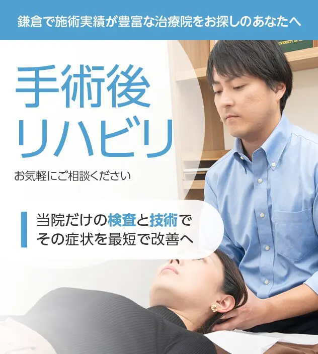 手術後リハビリでお悩みなら、充実した検査と豊富な施術実績を誇る当院にお任せください。